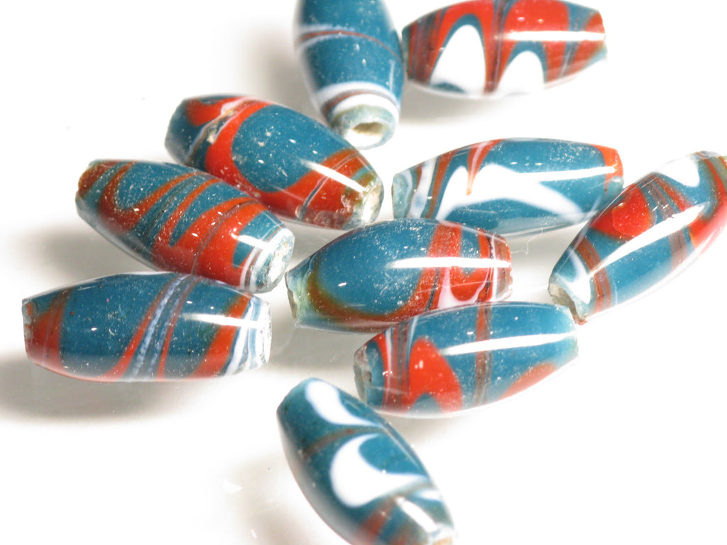 Marbling pattern lampwork bead. Javanese traditional and classic barrel-shaped bead. This product is for handmade accessory and handmade jewelry.