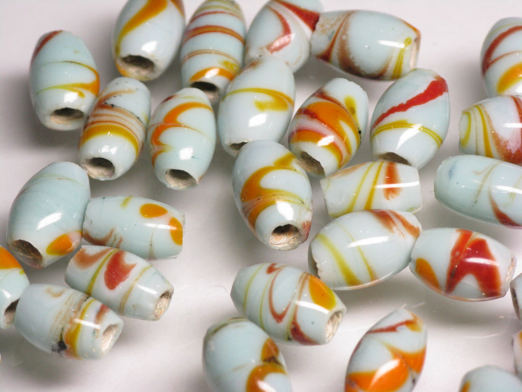Marbling pattern lampwork bead. Javanese traditional and classic barrel-shaped bead. This product is for handmade accessory and handmade jewelry.