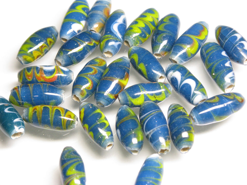 Marbling pattern lampwork bead. Javanese traditional and classic barrel-shaped bead. This product is for handmade accessory and handmade jewelry.