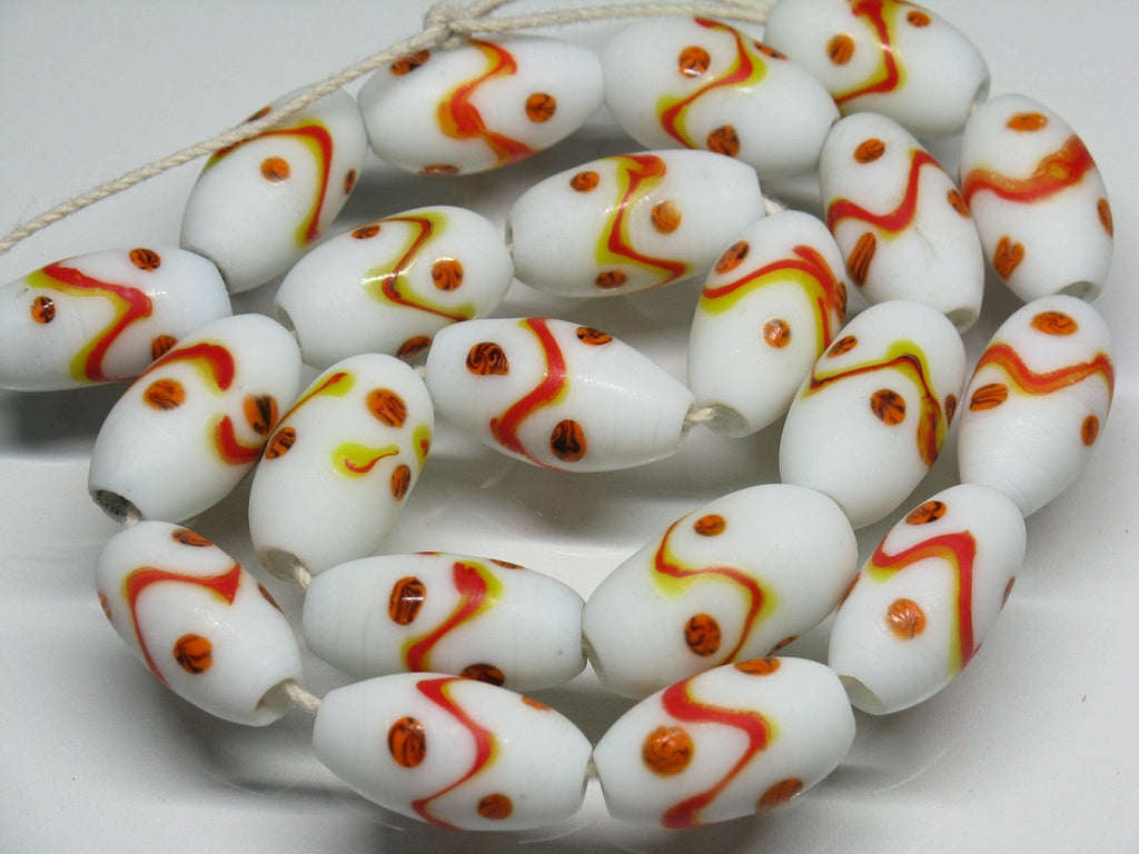 Spot & stripe lampwork bead. Javanese traditional and classic barrel-shaped bead. This product is for handmade accessory and handmade jewelry.