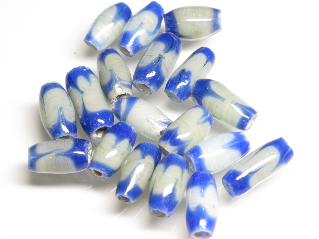 Marbling pattern lampwork bead. Javanese traditional and classic barrel-shaped bead. This product is for handmade accessory and handmade jewelry.