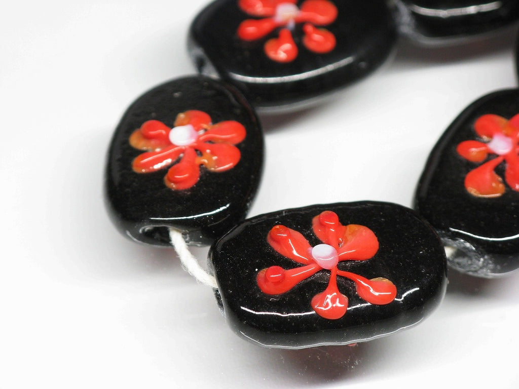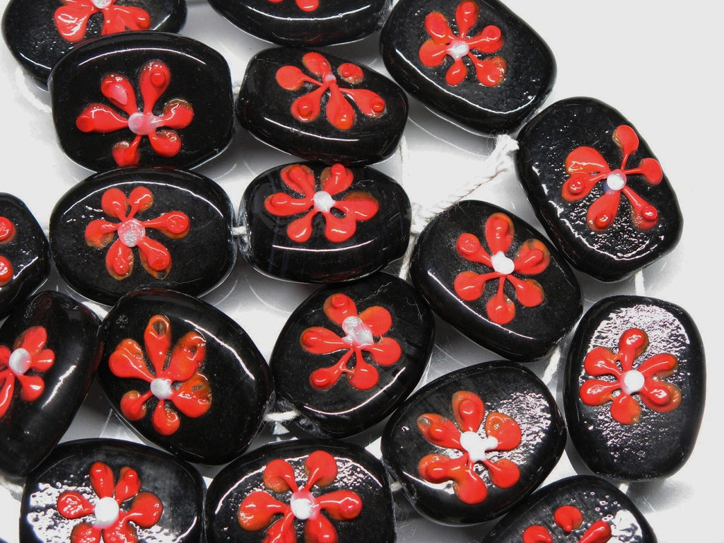 インドネシア・ジャワの工房で作られた丸形とんぼ玉のうち、「花」をモチーフとしたものは数多くあります。歴史が長いタイプのためほとんど無限と思われるほどさまざまなデザインがあり、また、そのことで同色同デザインの再現が難しいタイプです。数十年前にインドネシアで初めて見たこれらのとんぼ玉に魅せられて今この仕事をしているといっても過言ではありません。トコ・ビーズの最も古い商品の一つです。(この商品は手作りジュエリー・アクセサリーパーツ・エスニック雑貨として販売しています)